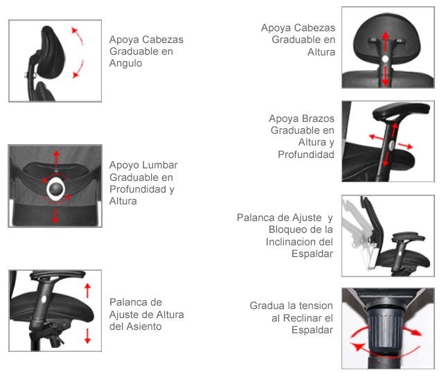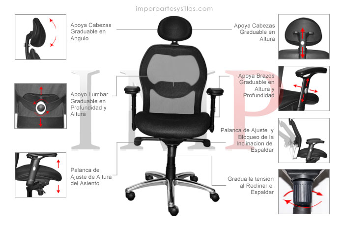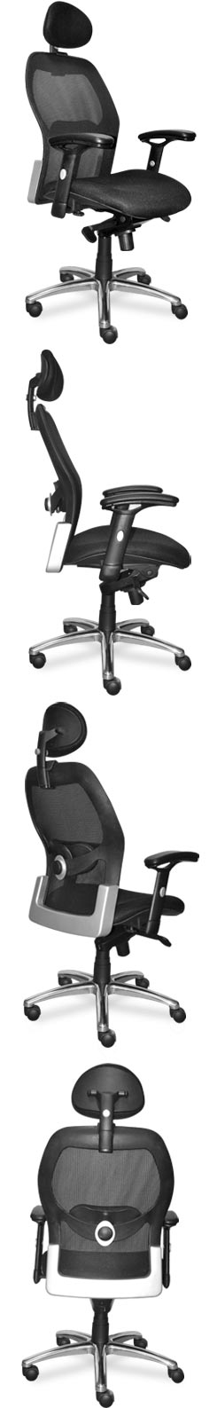 Esta Silla ofrece todas las funcionalidades que puede requerir un usuario que busca confort ergonomia y calidad. Espaldar en Malla apoya cabezas, soporte lumbar y brazos graduables.