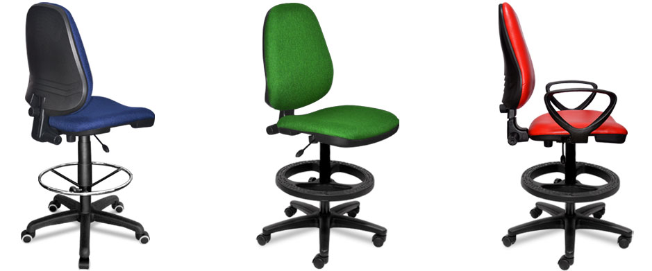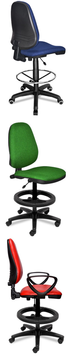 Silla con extensor en el neumatico, cuando se requiere mayor altura, viene con aro descansa pies y base terminadas en plastico o metalica cromada segun su elección.