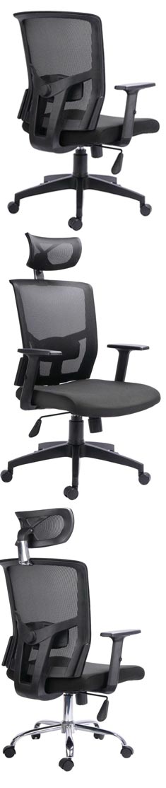 Silla Ejecutiva Ergonomica con espaldar en malla traslucida, apoyo lumbar graduable en altura y profundidad, cabecero graduable en altura y angulo, brazos graduables en altura.
